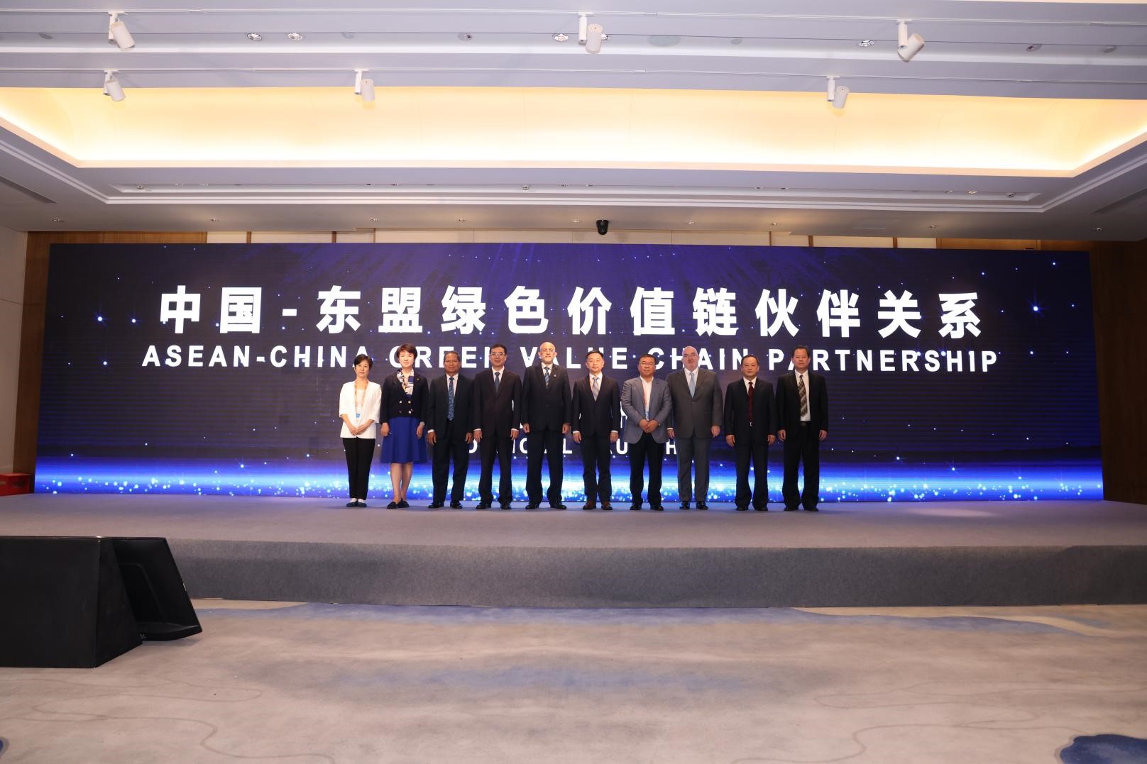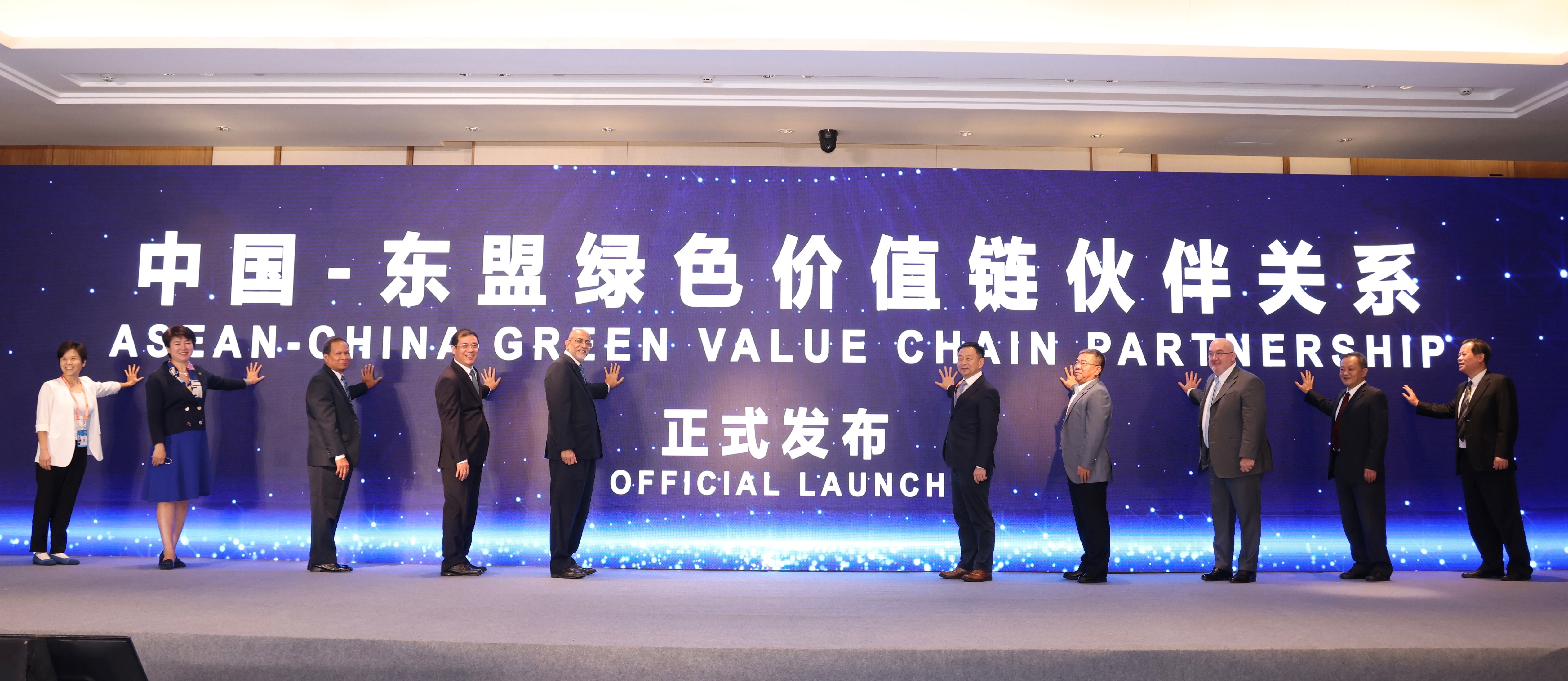 中国-东盟环境保护合作中心/生态环境部对外合作与交流中心(以下简称中心)副主任李永红、马来西亚棕油总署署长拿督巴威斯博士(Datuk Dr. Ahmad Parveez)、广西壮族自治区生态环境厅厅长陈亮、海南省生态环境厅厅长毛东利、老挝自然资源与环境部代表/老挝自然资源与环境研究院院长隆卡姆·阿察纳翁(Lonkham Atsanavong)、世界自然基金会全球网络发展总监朴尚德(Jean-Paul Paddack)、云南省生态环境厅督察专员杨永宏、世界资源研究所(美国)北京代表处首席代表方莉、广西现代物流集团有限公司董事长覃黎魁、雨林联盟中国区首席代表胡新艳共同见证并发布了“中国-东盟绿色价值链伙伴关系”。